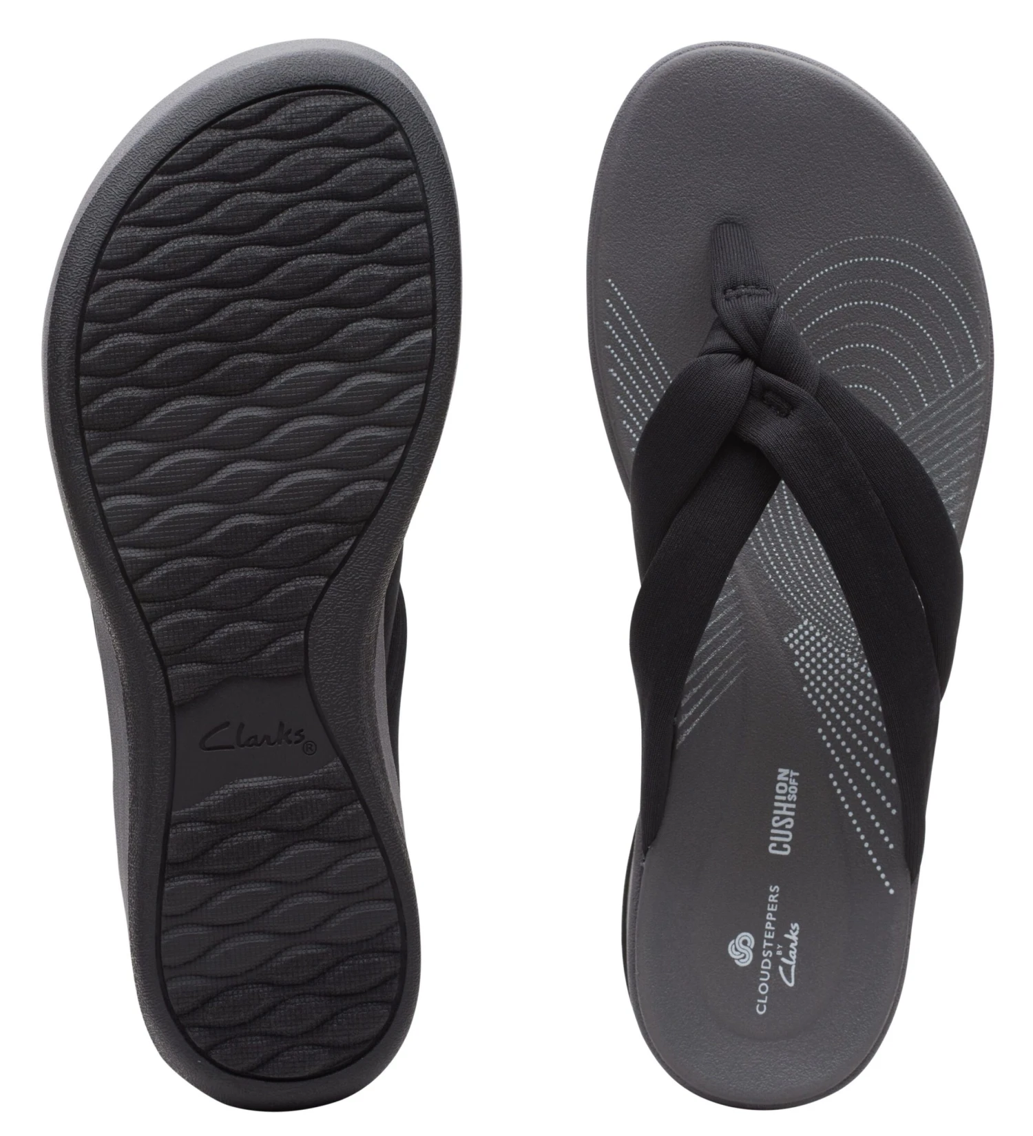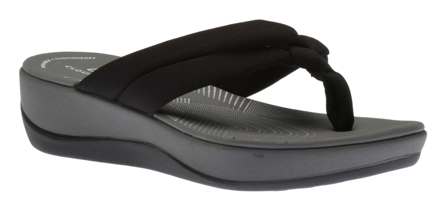 The Arla Kaylie by Clarks Cloudsteppers collection is a high-performance flip flop built for comfort. The upper strap is made from strong yet soft fabric, keeping the foot secure. The EVA midsole is ultra-lightweight and bouncy, making this sandal ideal for all day wear, whether you’re running errands or attending a sporting event.