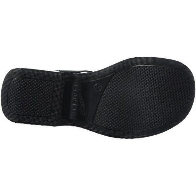 - Leather upper with an adjustable buckled heel strap for a secure fit.