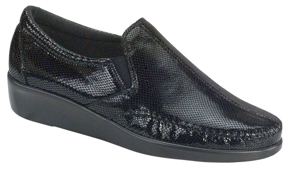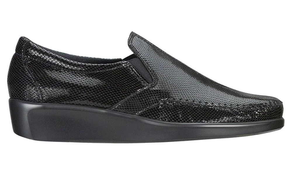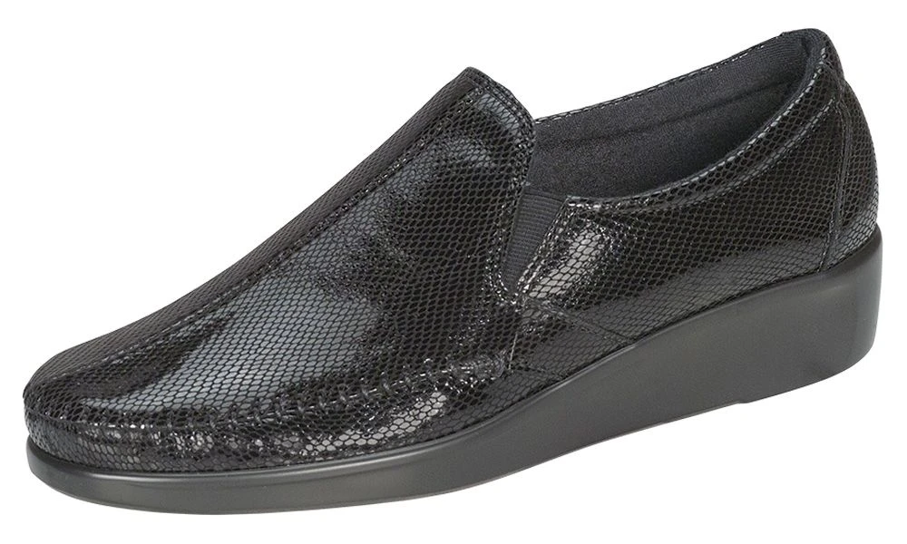 Designed to fit and follow the shape of your foot and handcrafted from fine leather, this sleek slip-on features true moccasin construction. Pillow-soft lining, TRIPAD® Technology, and a removable cushioned footbed comfort each step. Side elastic gore panels provide flexibility with every movement. A SAS Lightweight Supersoft® polyurethane outsole ensures shock-absorption with each and every step.