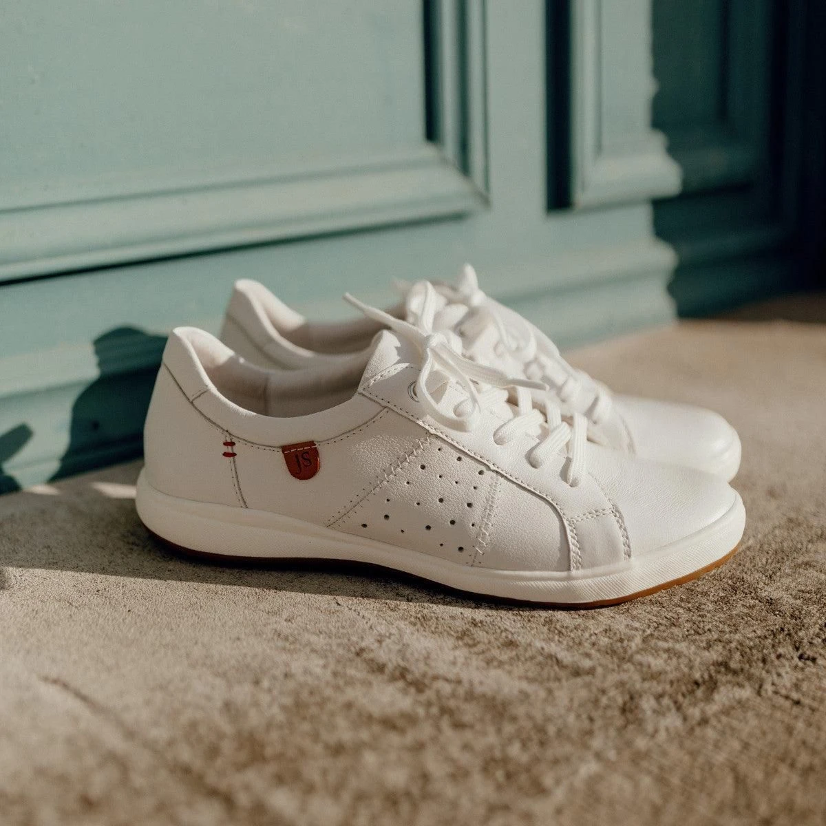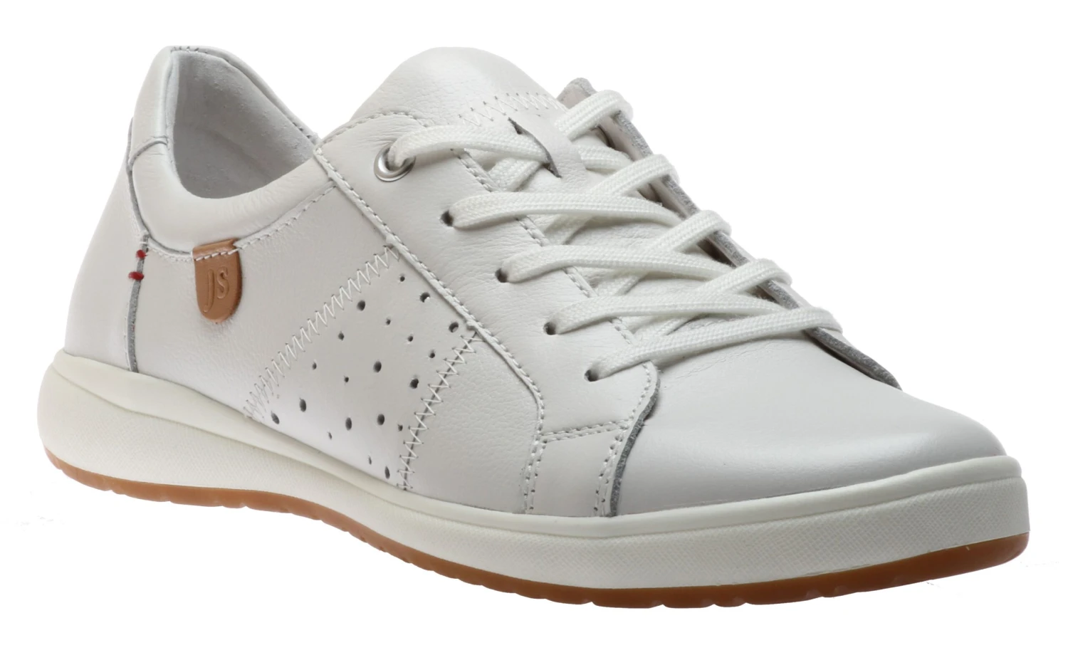 The Caren 01 in white is a comfortable yet refined sneaker that is versatile and pairs well with all of your spring and summer outfits! Crafted from buttery soft leather, this walking shoe features adjustable laces for a secure and comfortable fit and pinpoint perforations on the side adds breathability. You’ll enjoy the luxurious feel of the leather lining and a leather cushioned footbed makes this shoe as comfortable as it is stylish.