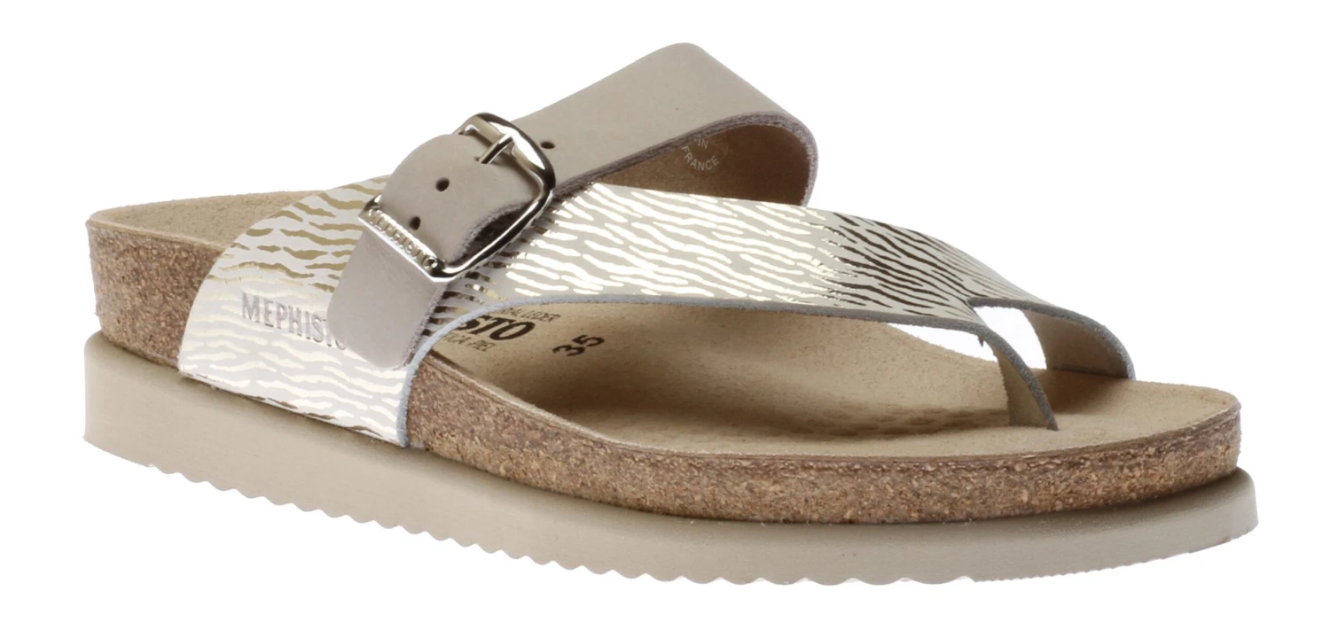Make a statement with the beautiful Helen Zebra thong sandal by Mephisto! Ultra-comfortable with its anatomic correct footbed, cork midsole and multi-layered footbed integrated with Soft-Air Technology to reduce shock, it’s hard for any other sandal to compete. An adjustable instep strap ensures a secure fit, a thin toe post helps eliminate irritation and an EVA outsole absorbs shock and reduces stress put on your feet, legs and back. Try these Mephisto sandals and never look back!