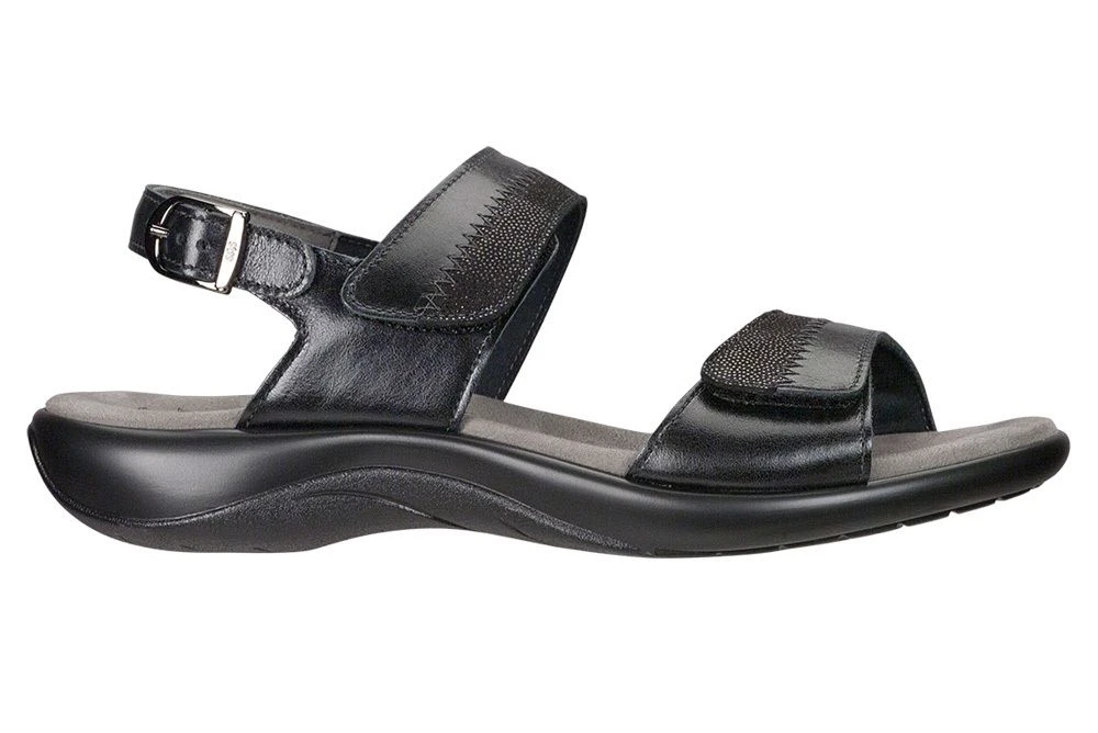 Sleek comfort with adjustability, plus the colour and polka dot print on the straps, makes the Nudu sandal a great, versatile find. Crafted from premium leather, the sandal also features adjustable straps that provide control over your fit, while a cushioned contoured insole gives support all day. Soft cushioned lining surrounds your foot in comfort and a shock-absorbing sole helps support each step.