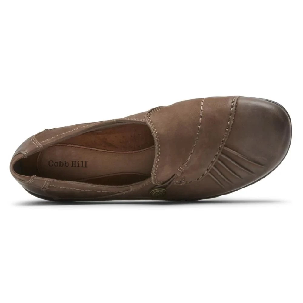 Sometimes you just need a good solid shoe for all-day comfort. But what about all-around style? This modern slip on has it all with asymmetrical ruching over the top and an antique metal value with bungee clasp for an ever so fashionable fit.