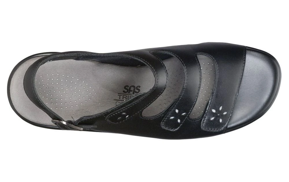 For maximum customization in a plush comfort sandal, Quatro is your pick. This strappy leather sandal features four adjustable straps for custom fitting with hook-and-loop closures at heel, ankle, vamp, and toe. A roomy toe box provides ample space for toes to relax. Inside, a soft fabric lining provides breathable comfort while a contoured footbed offers shock absorbing cushion to the entire length of the foot. A SAS Tripad® Comfort System comforts and provides all-day support to three pressure points: the inside ball, outside ball and heel. A SAS Supersoft® Lightweight Sole offers a wider sole to provide added stability and maximum shock absorption.