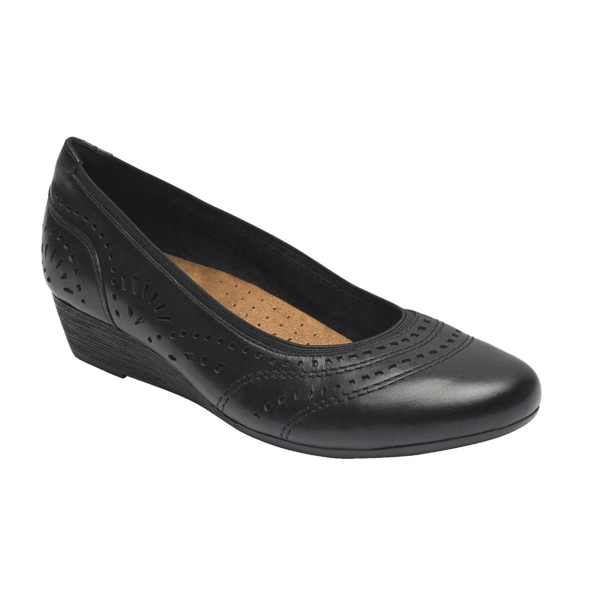 Beautifully adorned, the Judson Perforated Pump by Rockport’s Cobb Hill collection is the perfect height to go from work to dinner, without sacrificing style for comfort. Versatile yet seasonable, this mid-wedge heel features lush, full-grain leathers, the personalized fit of a foam footbed and a durable outsole for support and stability.