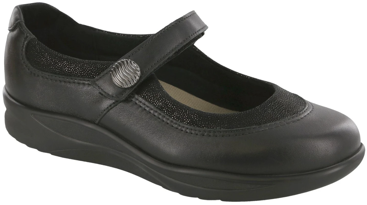 This modern Step Out Mary Jane shoe is crafted from premium leather and features an adjustable hook-and-loop fastener with a decorative value, a cushioned instep and high cushioned collar for a comfortable wear. Designed on a special SAS Footshape® last to fit and follow the shape of your foot and quickly adjust your fit with an SAS EZ Strap on this “Mary Jane” shoe. TRIPAD® Technology adds extra cushioning to the three main pressure points of the foot, while S-Motion Technology® supports the three part walking motion: from heel strike, through the mid-step to the final toe push-off.